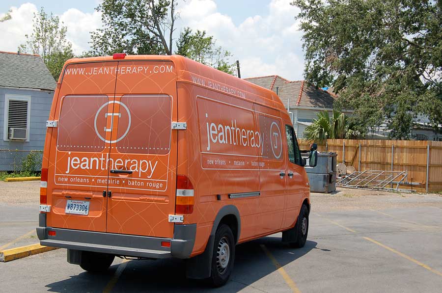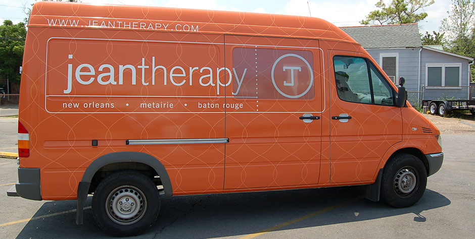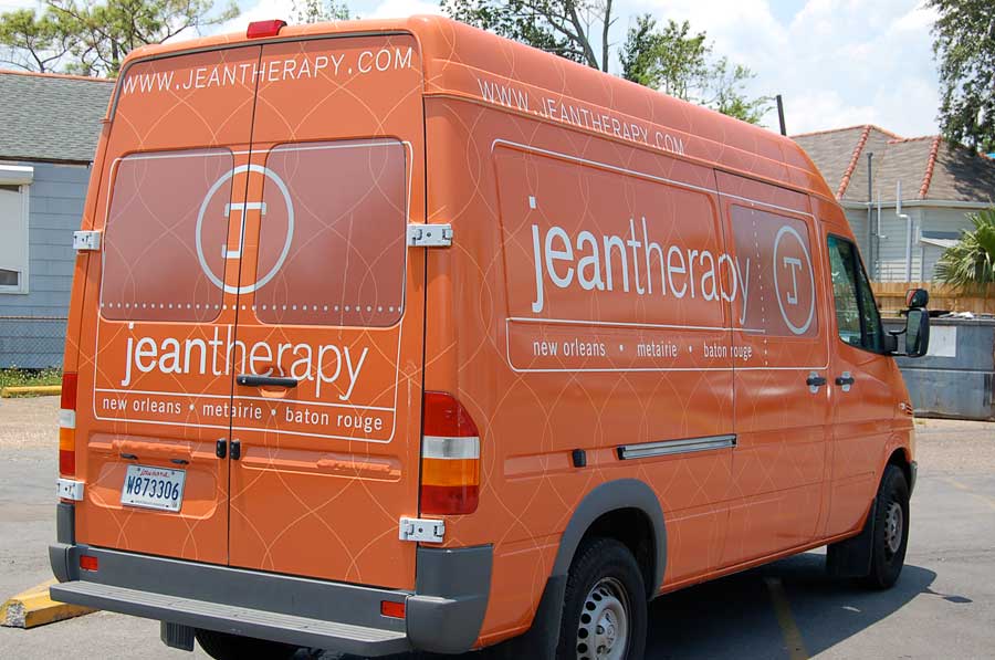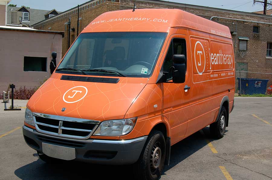 We wrapped this Sprinter van for local retailer Jean Therapy in 200X, helping to create a highly visible and on-brand message mobile.