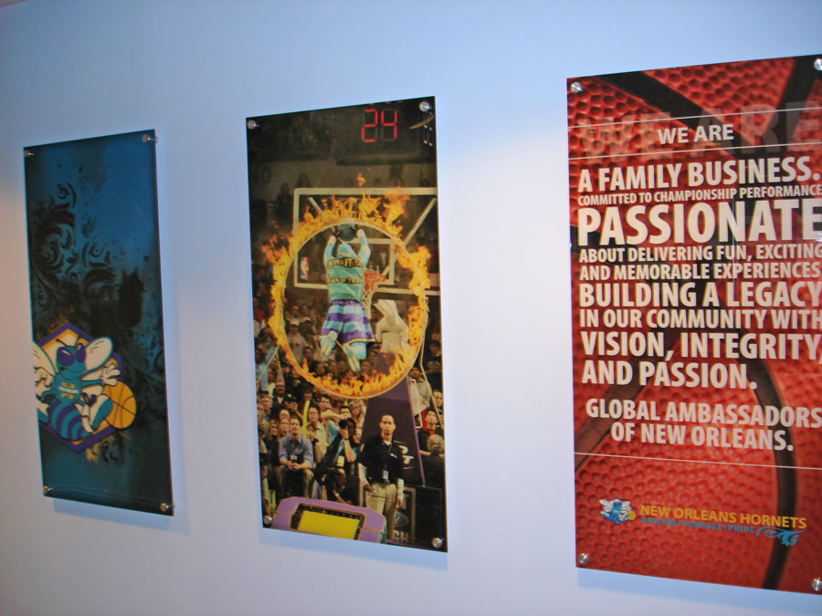 Description: Uptown was hired to concept, image, and install various elements for the corporate offices of the New Orleans Hornets.