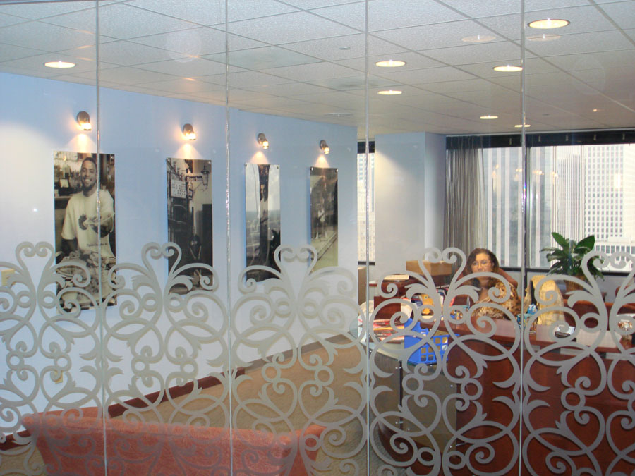 Execution: We imaged on wall paper, reverse printed on plex with standoffs, installed etch vinyl on front glass, and cut brushed aluminum letters to be installed above the front desk. The outcome was a true transformation that they still have today.